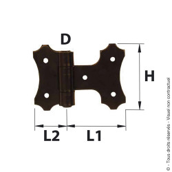 Charnière intermédiaire en acier bout feston pour articuler les volets liés en bois