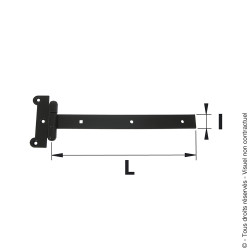 Disponible en section de fer 30x4, en longueur 300 à 600 mm pour s'adapter à la largeur du vantail à articuler.