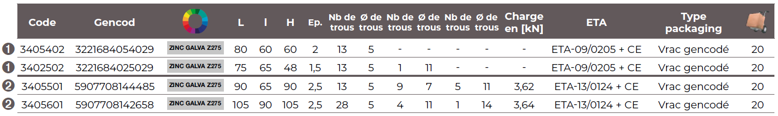 | Déclinaisons | Modèle | H (mm) | L (mm) | I (mm) | Référence | EAN |