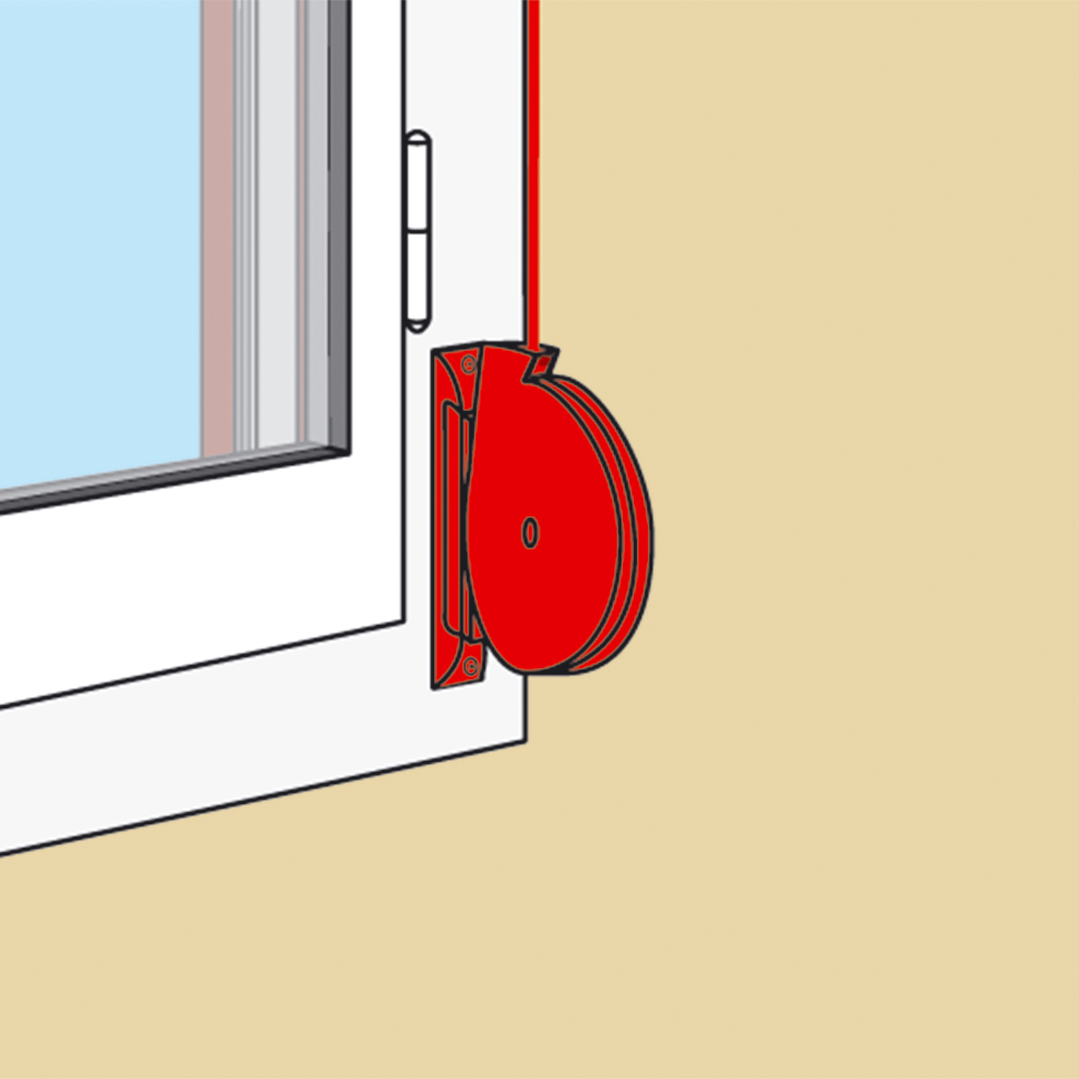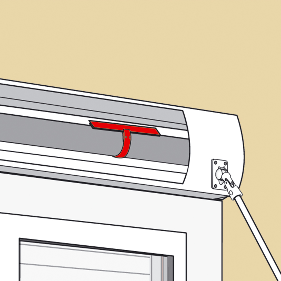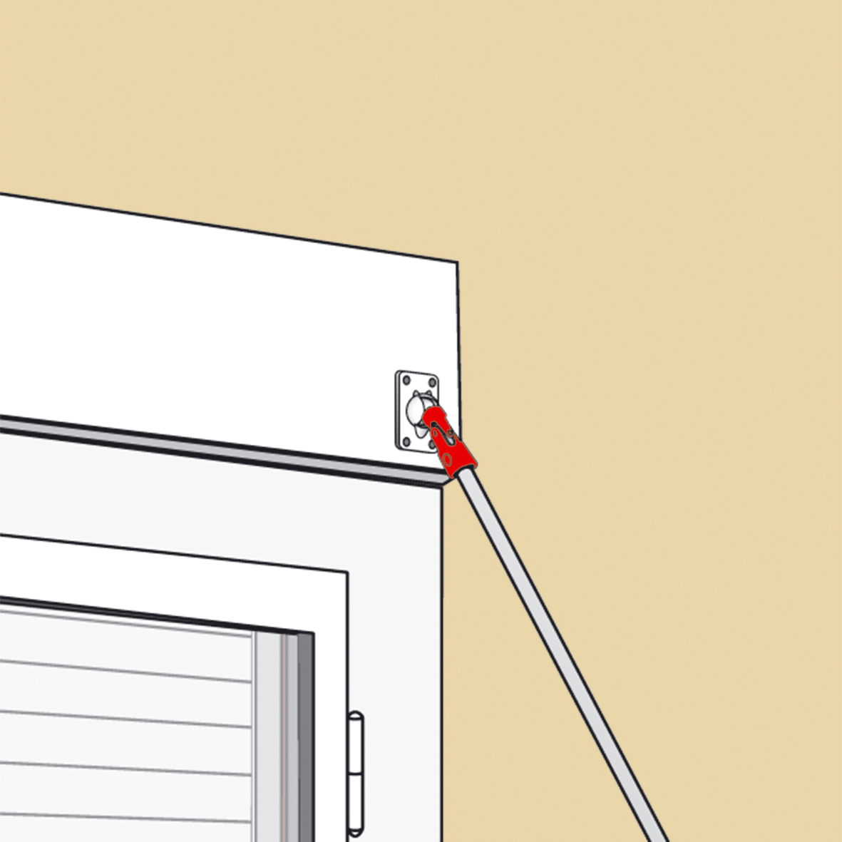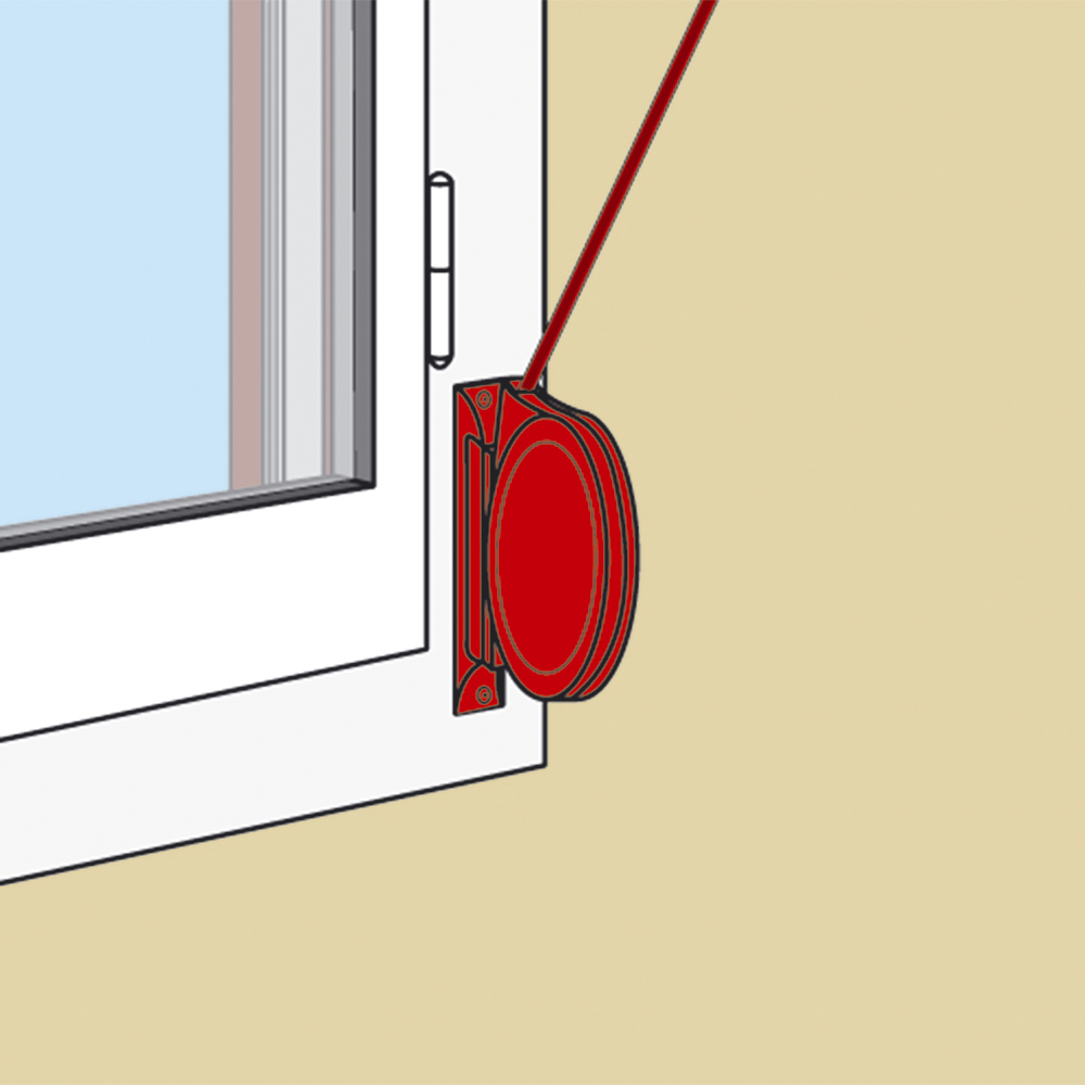 Sur le coffre situé en haut de l'ouverture, un guide-cordon doit être posé afin de faciliter le glissement du cordon et empêche au cordon de s'emmêler tout en limitant l'usure.