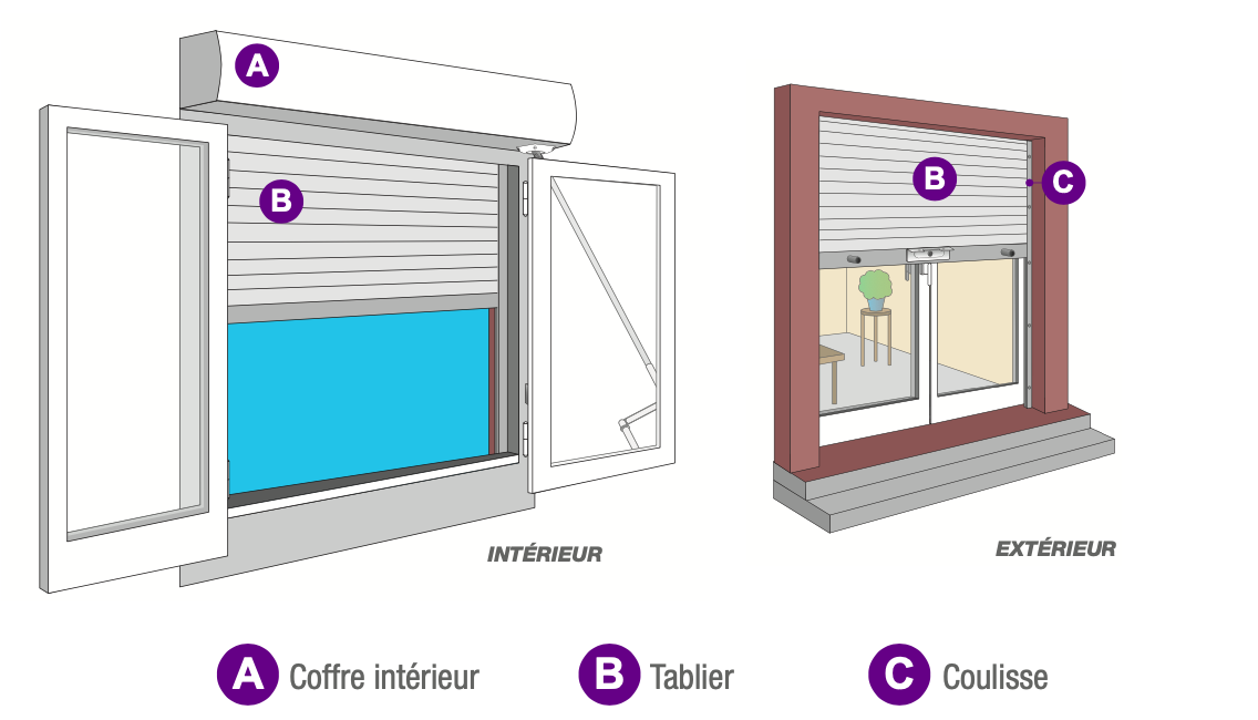 Les butées se fixent en général sur la dernière lame du volet roulant et empêchent au volet de remonter entièrement dans le coffre et de se bloquer.