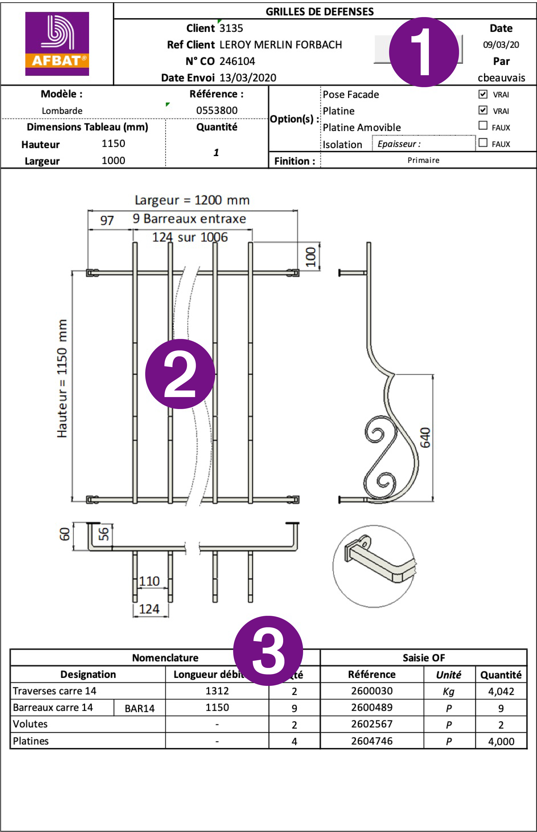 Lors de la fabrication des grilles de défense, nous avons besoin d'informations pour créer les grilles de vos rêves. Ainsi, sur cette fiche sont indiquées toutes les informations nécessaires à fabrication d'une grille.