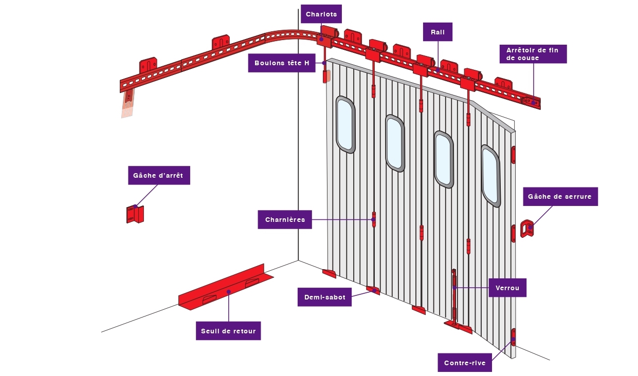 Plusieurs accessoires sont nécessaires pour équiper ce modèle de porte, découvrez-les ci-dessous :
