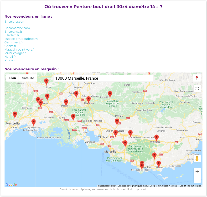 Nous avons mis en place un module qui permet de localiser nos produits.