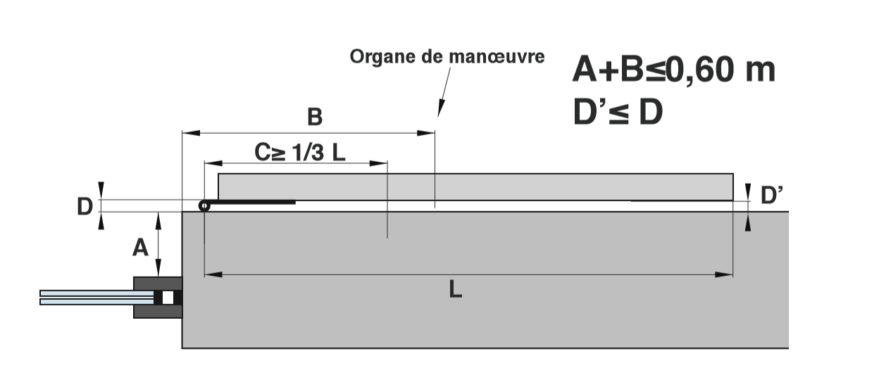 • L’organe de commande des arrêts de volets doit être situé à au plus 600 mm du dormant de la menuiserie ou du garde-corps.
