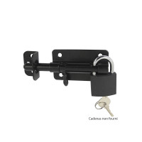 Le cadenas peut s’insérer dans le pêne côté gâche, soit dans le pêne à l’extrémité de la platine du verrou.