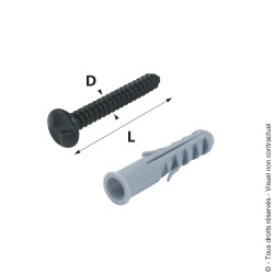 Vis indévissables de fixation pour grilles de défense extensiblesChevilles fournies.Fournies par 10 pièces.Ideal pour fixer les grilles extensibles.Tige filetée diamètre 8 mm.Longueur tige 60 mm.