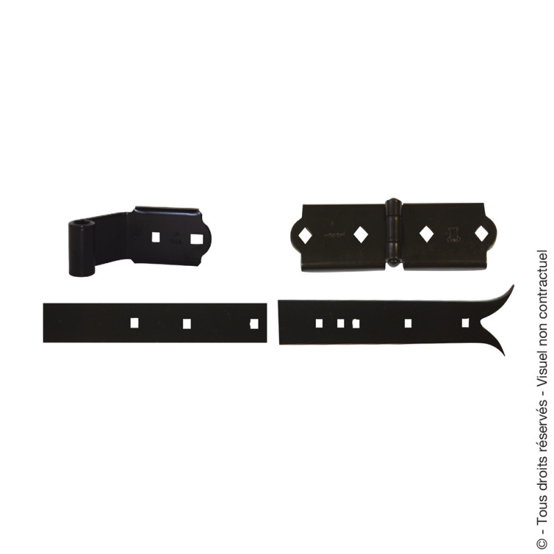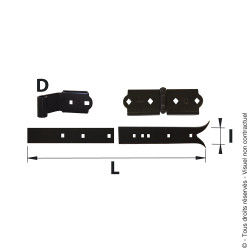 - Elément penture queue de carpe à recouper section 34x3,8 mm longueur 410 mm.