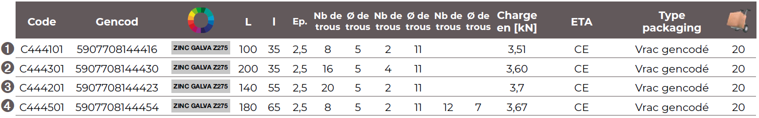 | Déclinaisons | Modèle | L (mm) | I (mm) | Référence | EAN |