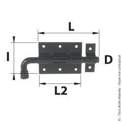 Verrou pistolet avec gâche pour porte battantes en bois